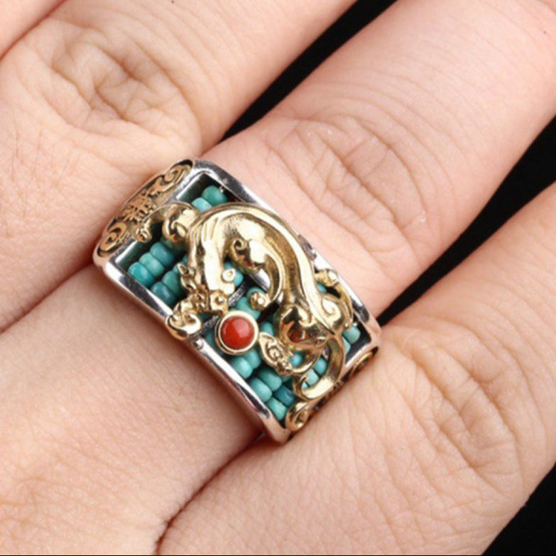 Pixiu Abacus Turquoise Open Wealth Ring Highlights