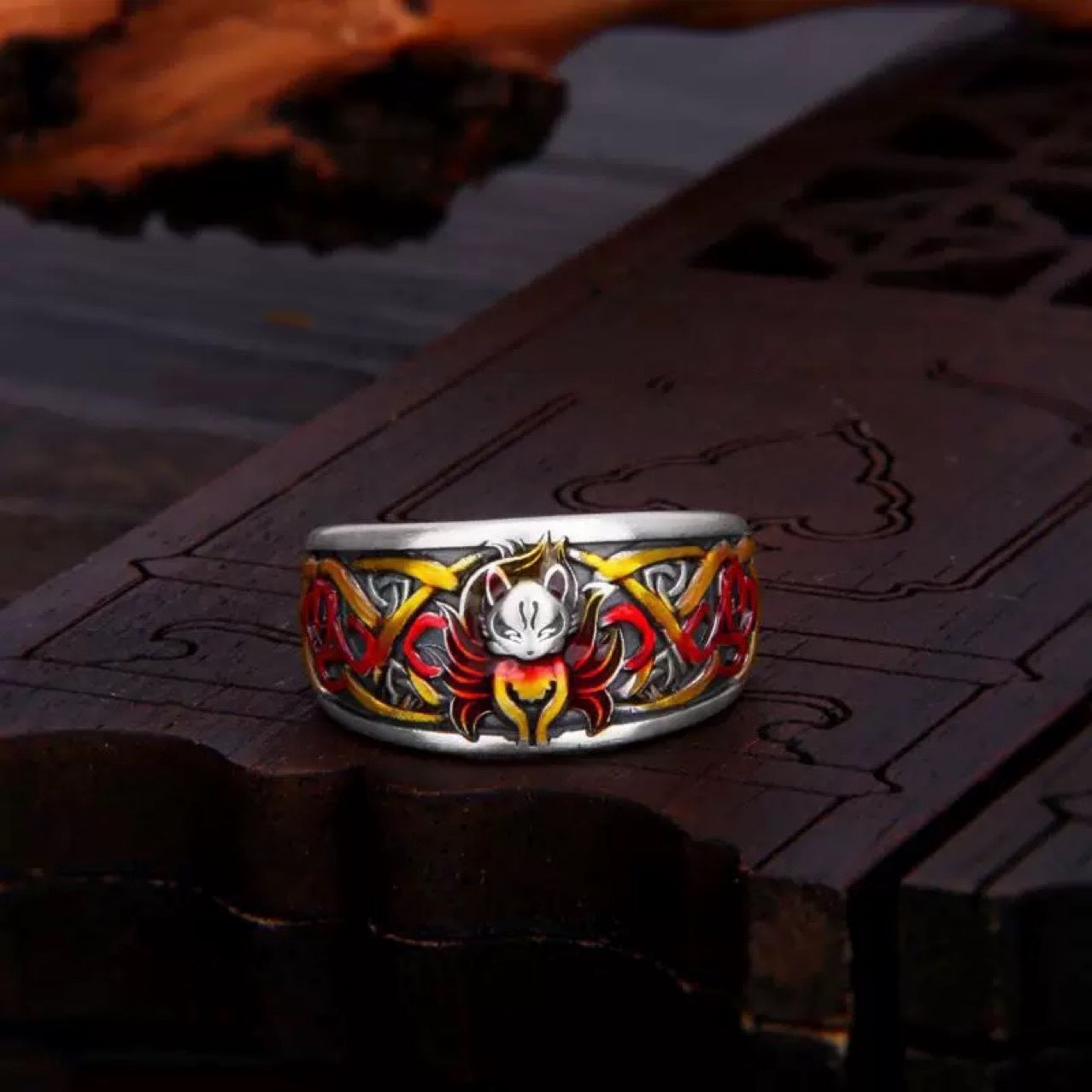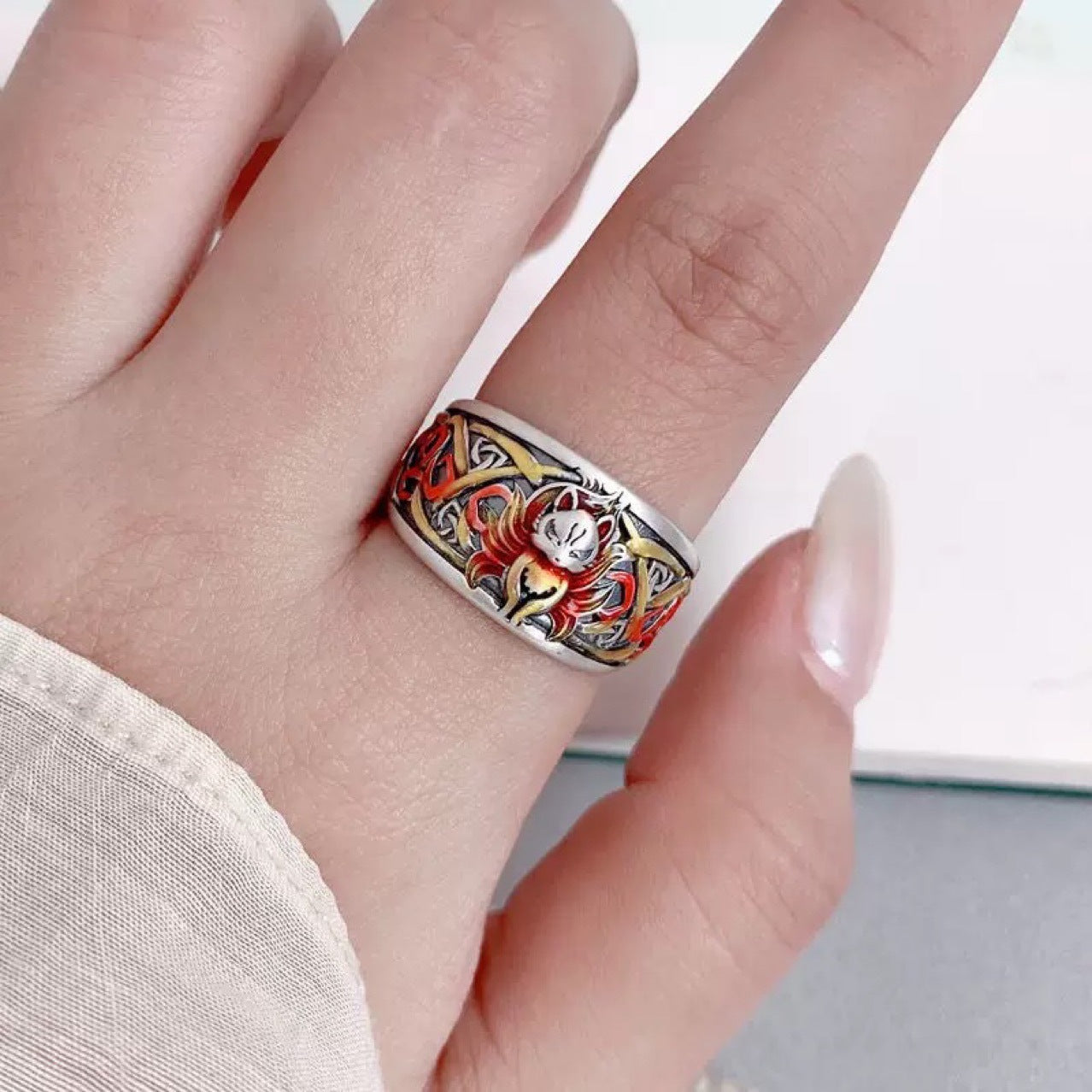 The Nine-Tailed Fox is believed to possess magical abilities, capable of warding off negative energy, bringing insight, and guiding its wearer through challenges. Crafted with a sleek silver finish, this open adjustable ring combines elegance with powerful symbolism, making it a meaningful talisman for protection, intuition, and personal empowerment.