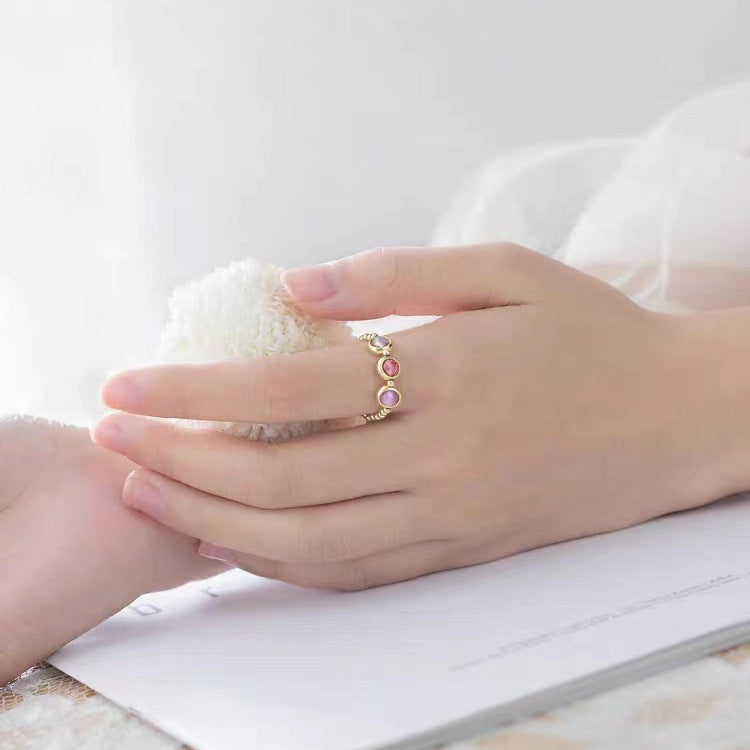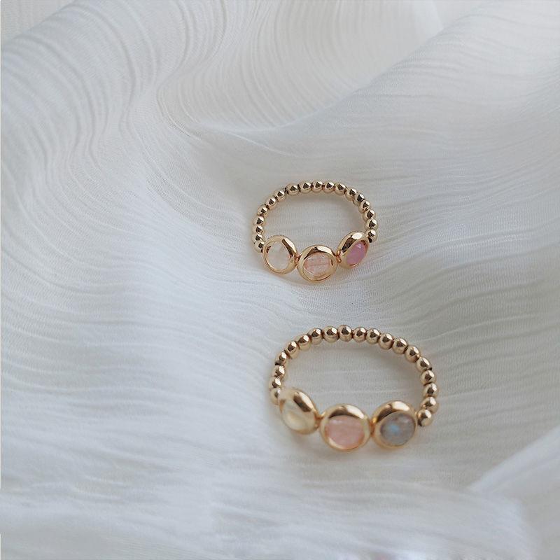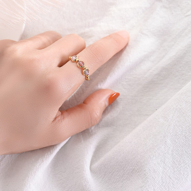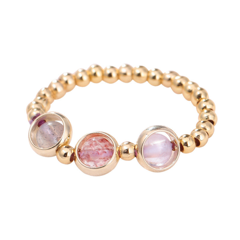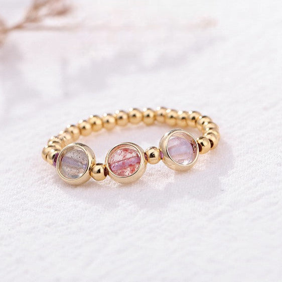 Strawberry Quartz Amethyst Moonstone Gold-Plated Balance Ring