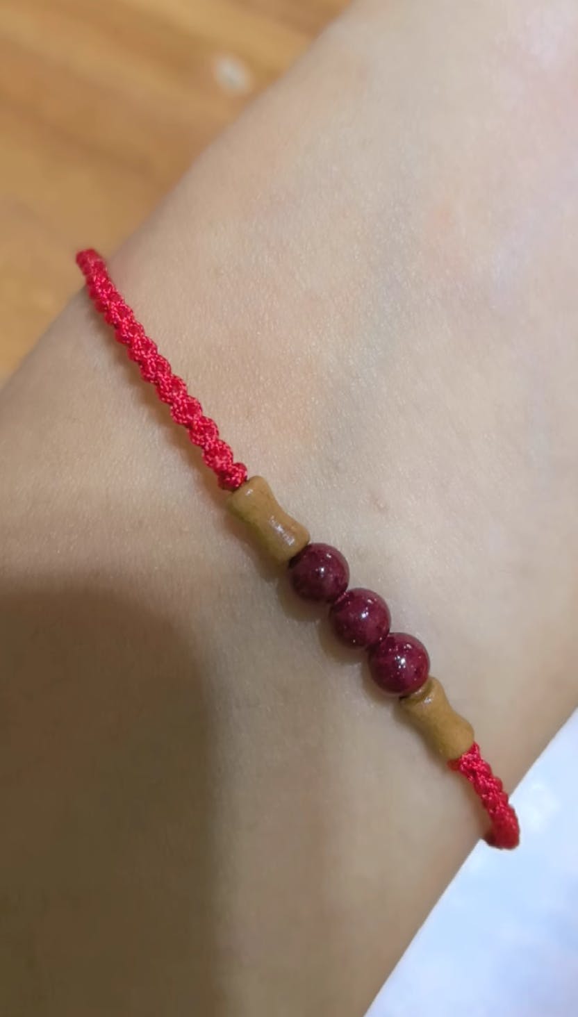 Wear the Cinnabar Bead Peachwood Bamboo Red String Luck Bracelet as a daily reminder to stay strong, attract blessings, and walk with positivity.