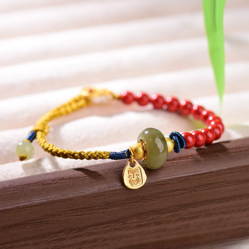 Tibetan Lucky Knot Cinnabar Bead Green Jade Bracelet