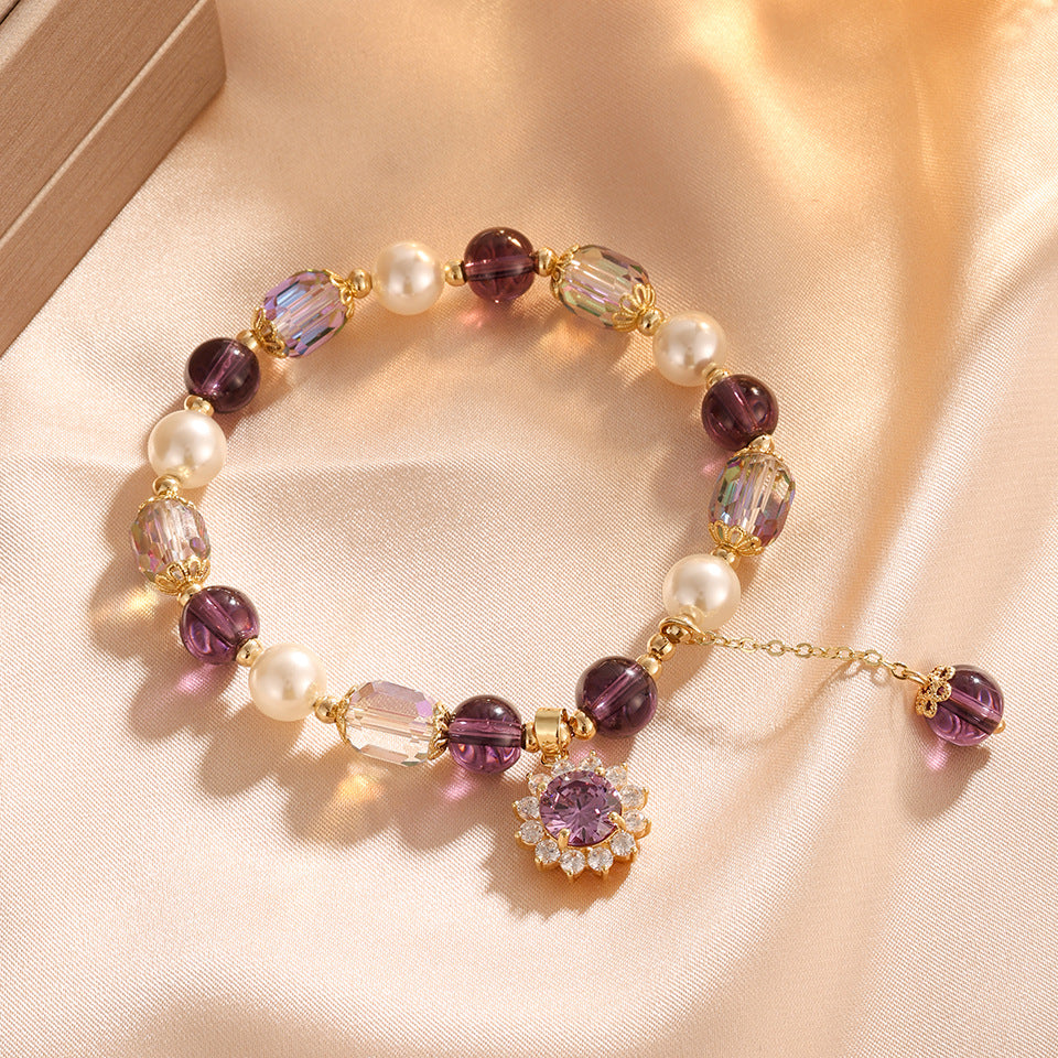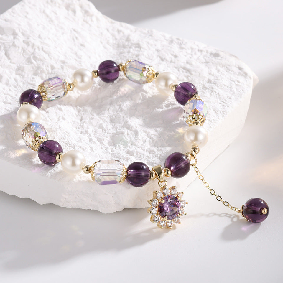 Amethyst Pearl Sunflower Pendant Balance Bracelet Highlights