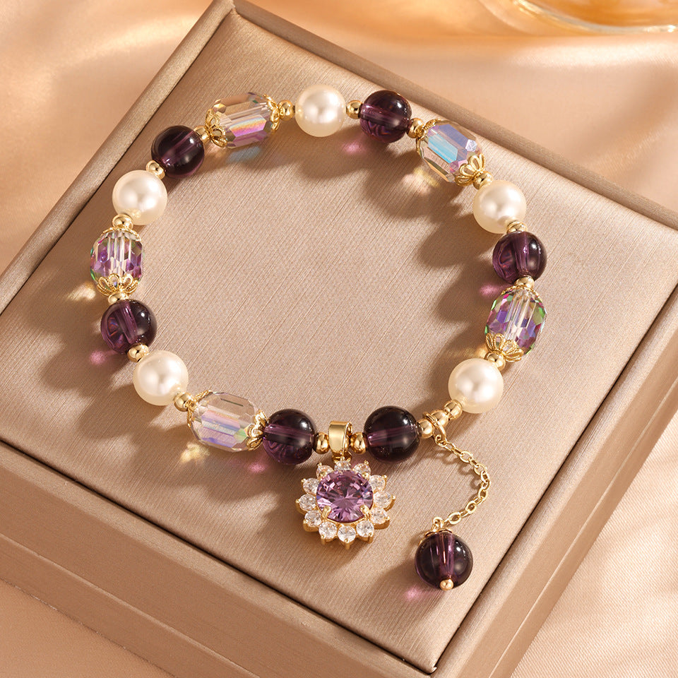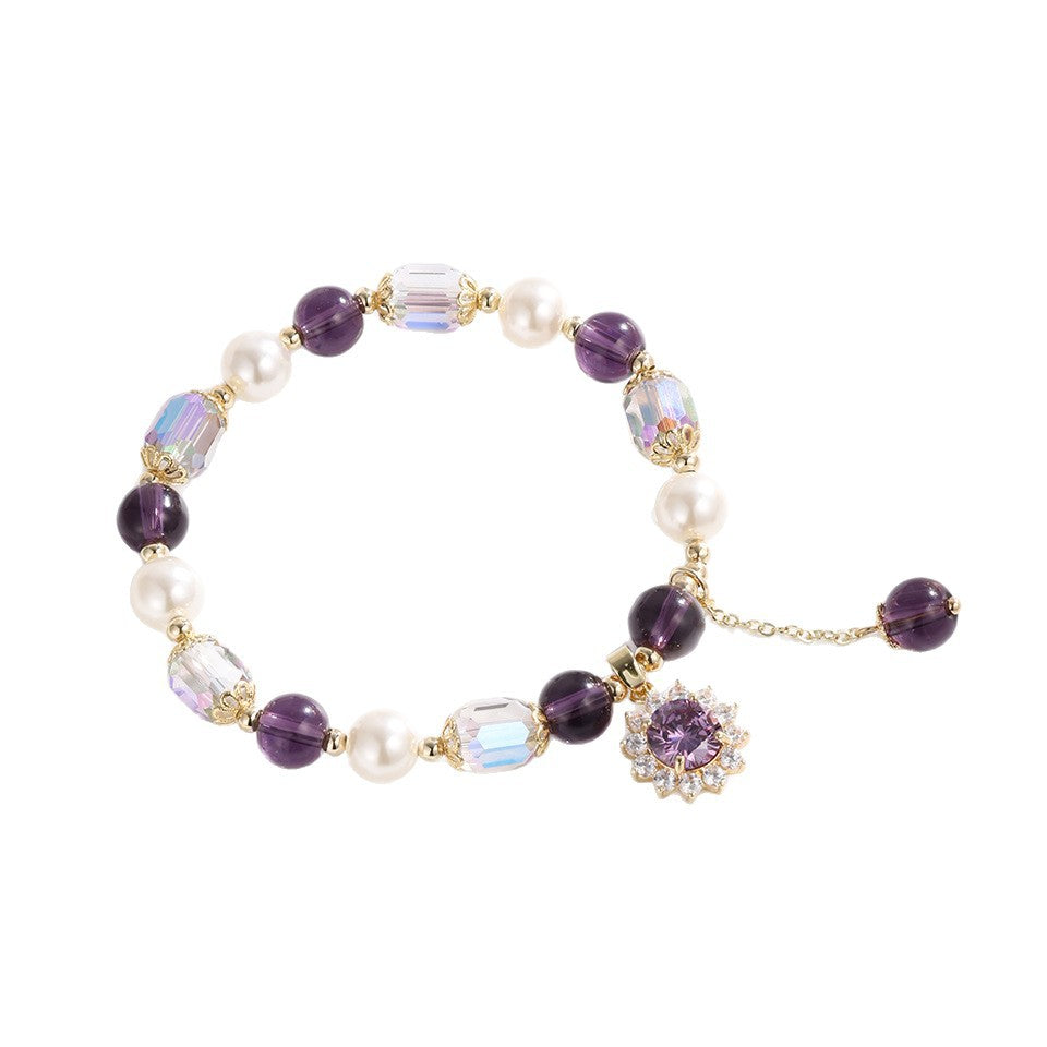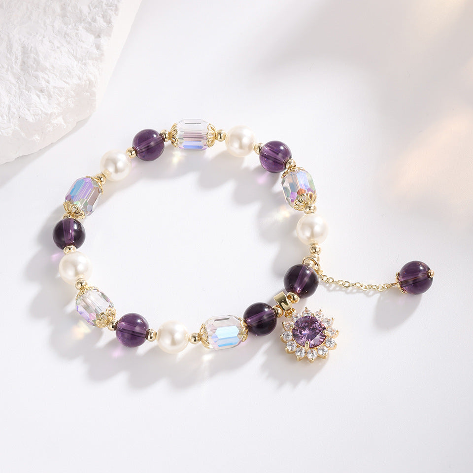 Amethyst Pearl Sunflower Pendant Balance Bracelet