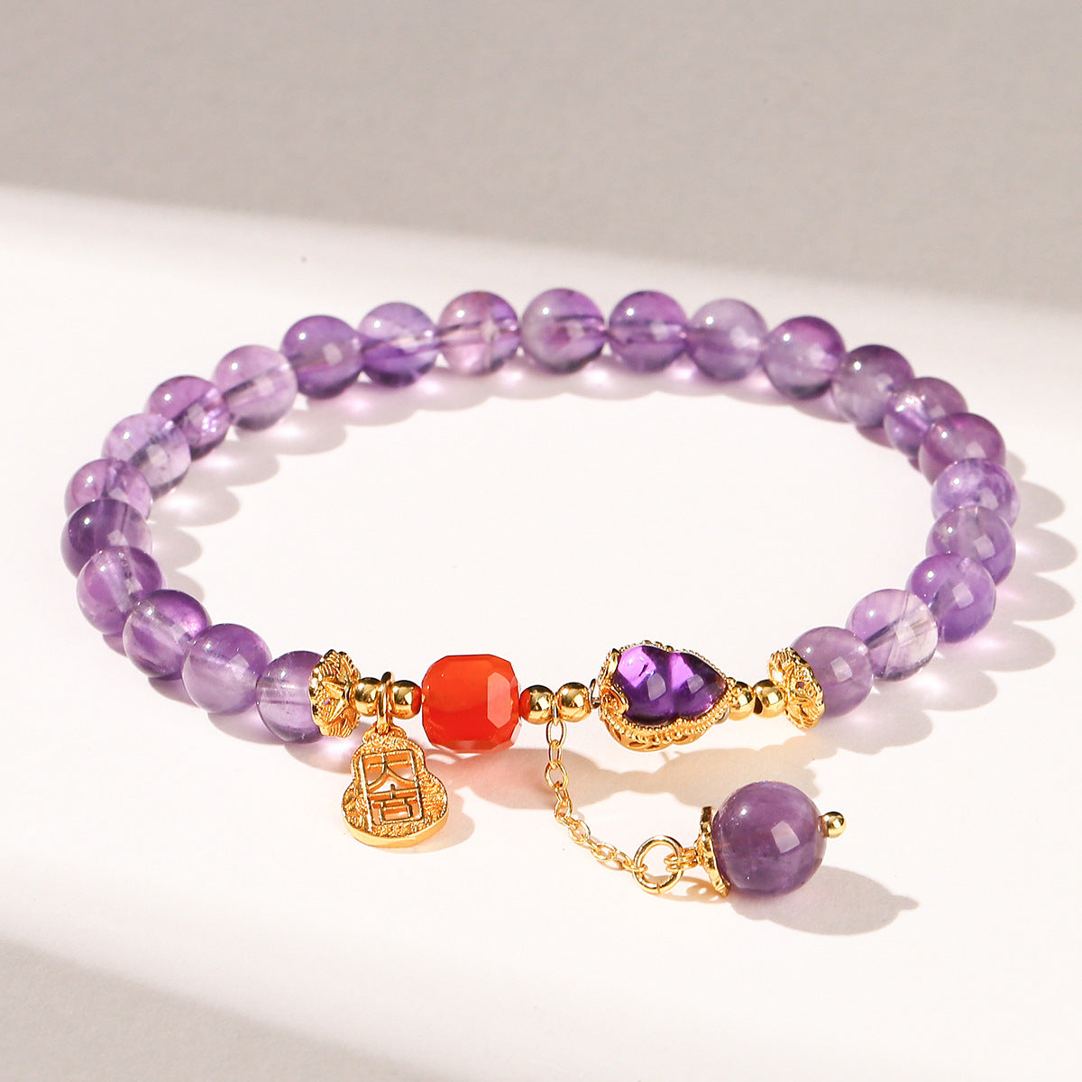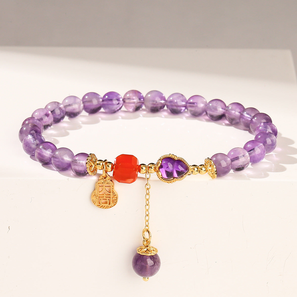 Amethyst Red Agate Gourd Charm Pendant Balance Bracelet Highlights