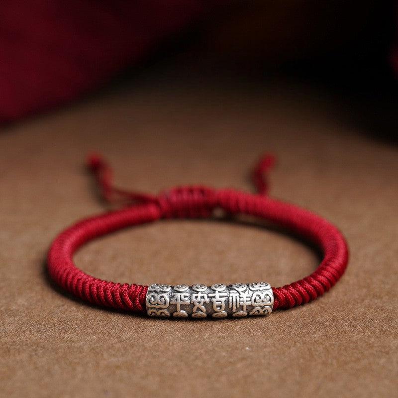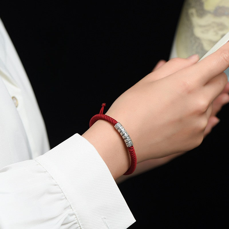 Engraved Silver Charm Red String Protection Bracelet Highlights