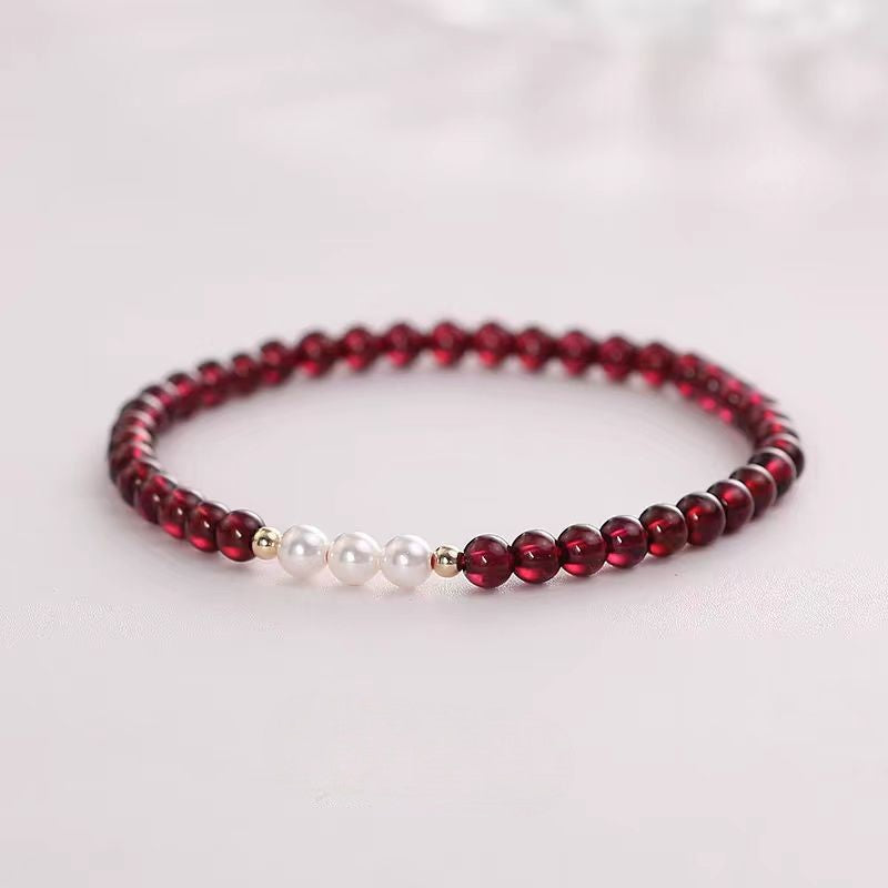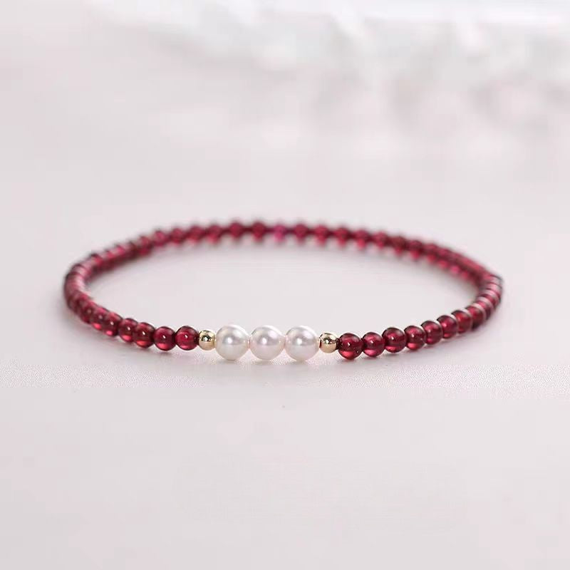 Radiate confidence, love, and harmony with the Garnet Three Pearl Balance Bracelet. This elegant bracelet blends the passionate energy of garnet with the timeless purity of freshwater pearls, creating a beautiful symbol of balance between strength and grace. Garnet, known as the stone of vitality and devotion, inspires courage, motivation, and emotional warmth, helping you stay grounded and energized. The three pearls represent purity, wisdom, and serenity — a trinity of calm energy that harmonizes the passionate nature of garnet. Together, they form a bracelet that balances the heart and mind, promoting emotional stability, confidence, and inner peace. Handcrafted with care, the Garnet Three Pearl Balance Bracelet embodies refined beauty and deep meaning — perfect for daily wear or as a heartfelt gift of love and balance.