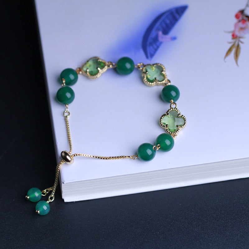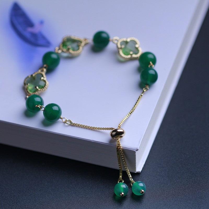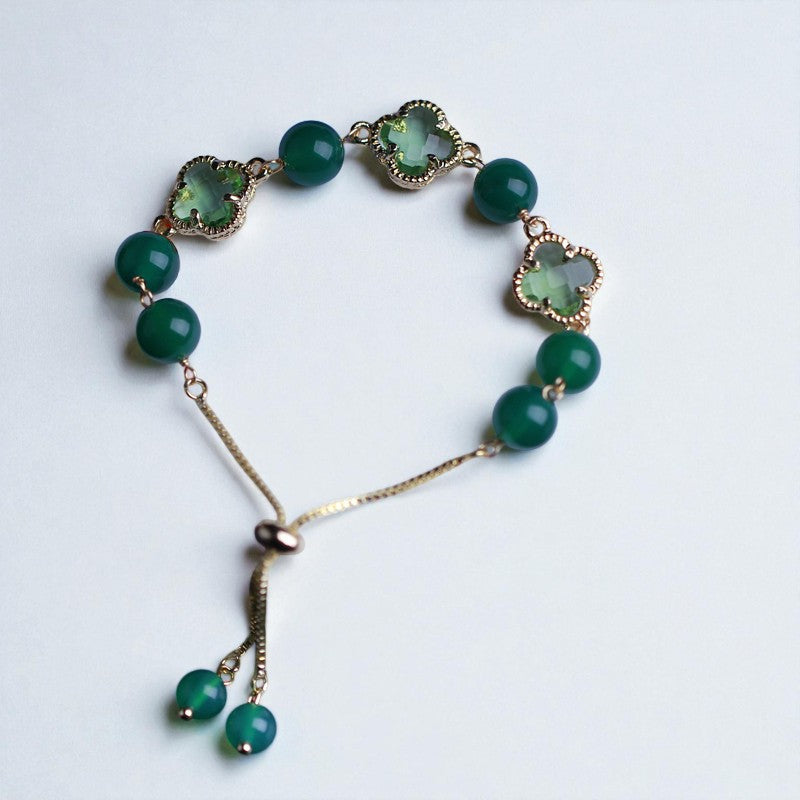 Green Agate Four-Leaf Clover Balance Bracelet Highlights