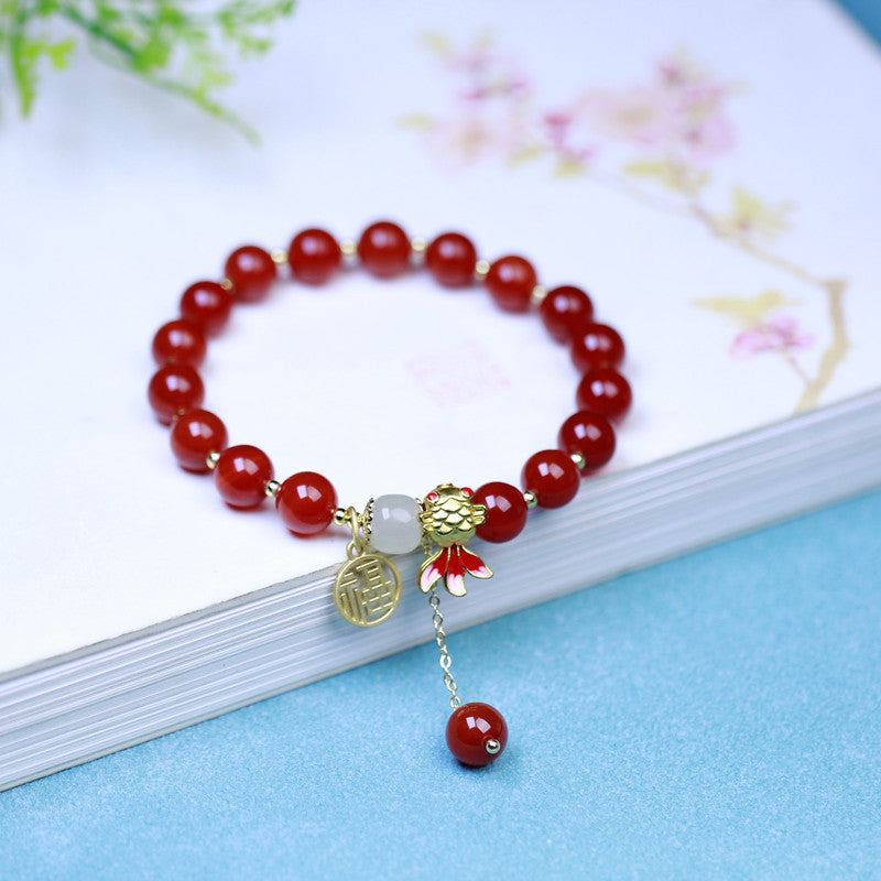 Red Agate Hetian Jade Goldfish Pendant Wealth Bracelet