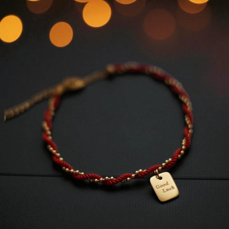 Square Charm Pendant Red String Luck Bracelet Highlights