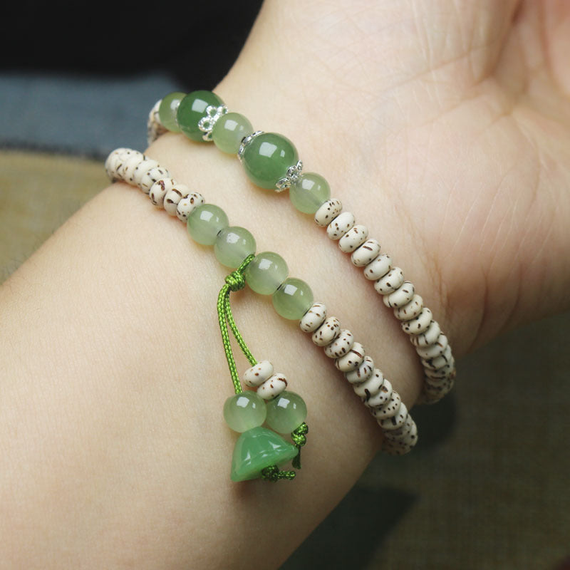 Star and Moon Bodhi Seed Green Jade Lotus Pendant Harmony Bracelet Highlights
