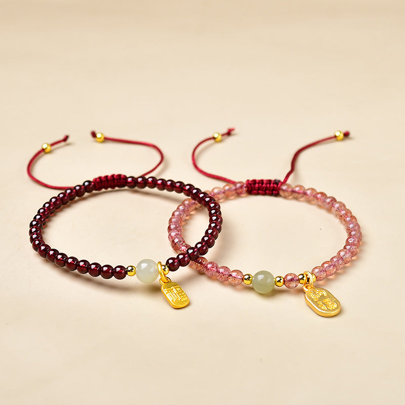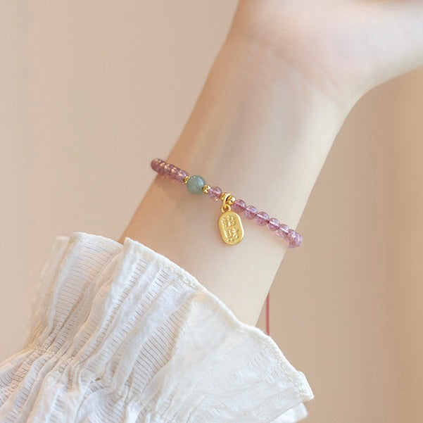 Strawberry Quartz & Hetian Jade Charm Pendant Love Bracelet Highlights