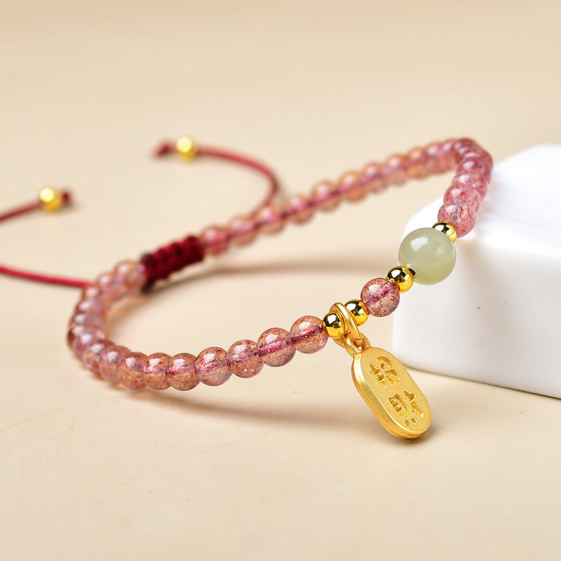 Strawberry Quartz Hetian Jade Charm Pendant Love Bracelet
