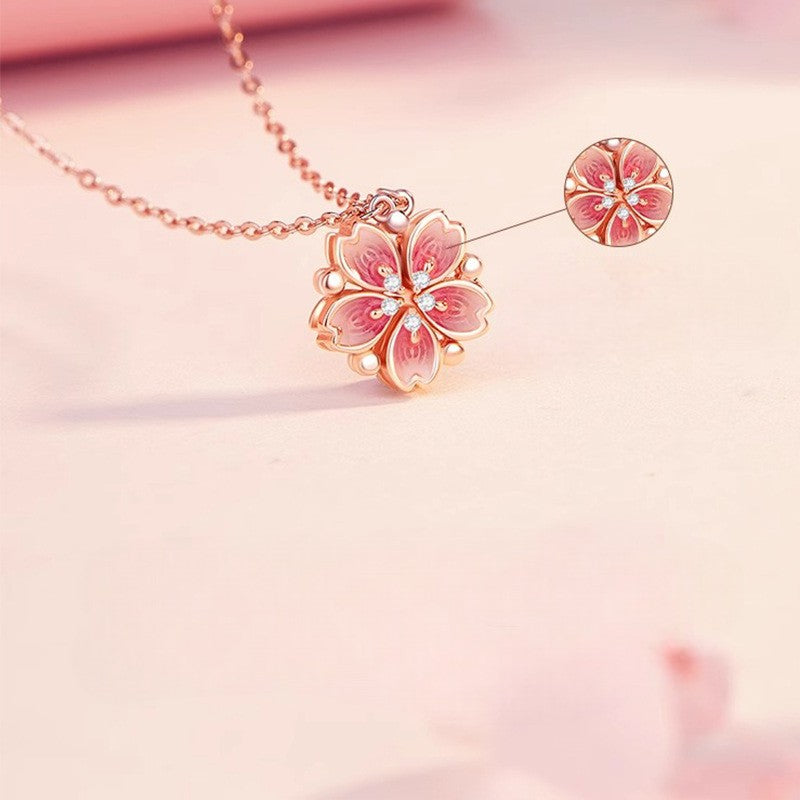 The peach blossom is a timeless symbol of love, romance, and positive energy in many cultures. When worn as a single pendant, it offers a subtle and elegant touch, perfect for daily wear. When expanded, the detailed blossom opens up, revealing its intricate design and adding a statement of charm and sophistication.