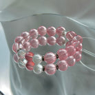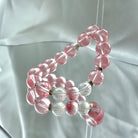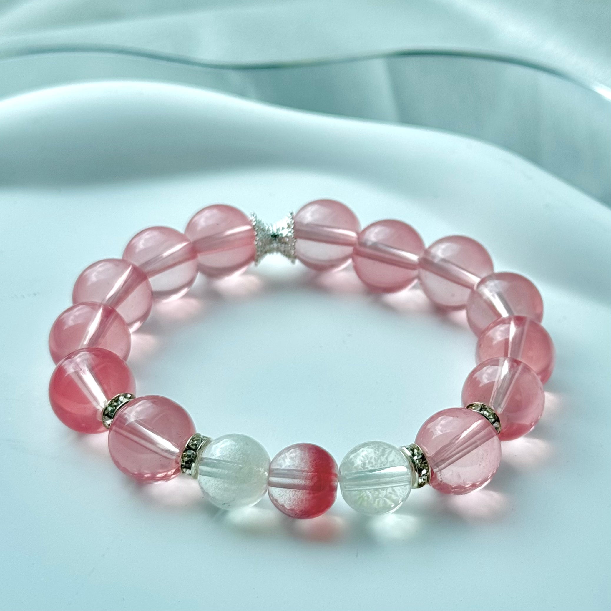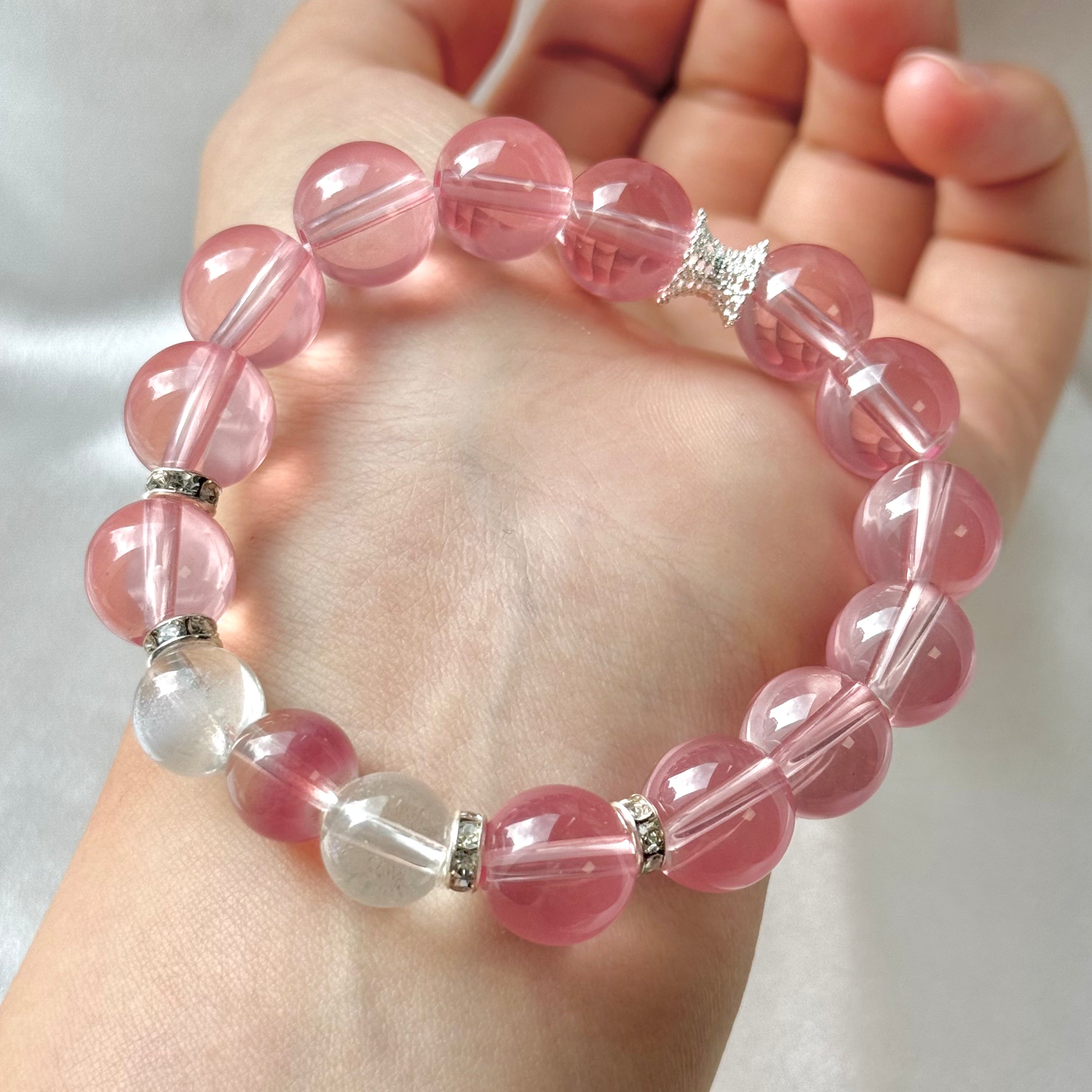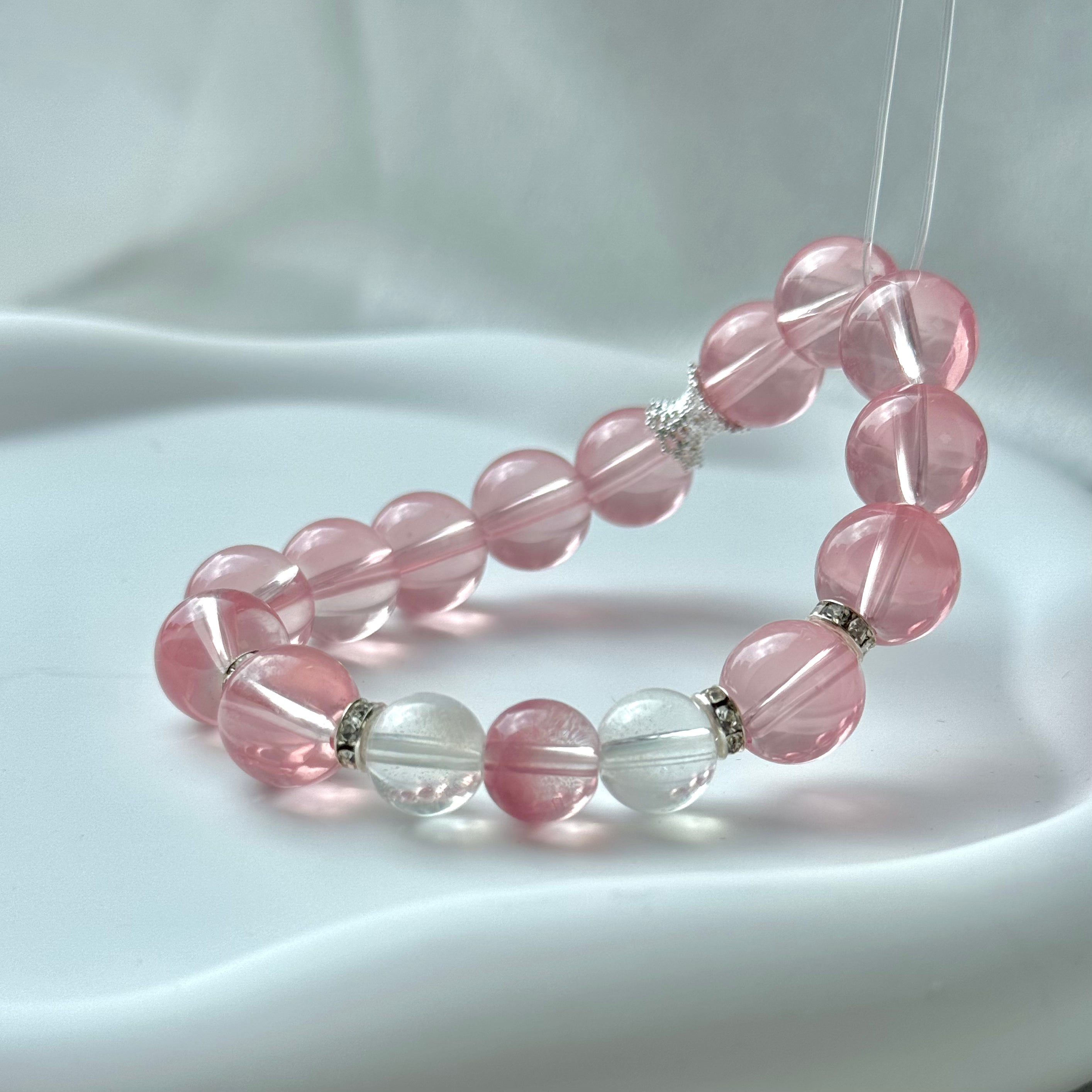Dieses Armband aus echtem Rosenquarz und weißen Kristallperlen soll Klarheit, Gelassenheit und herzzentrierte Energie fördern.