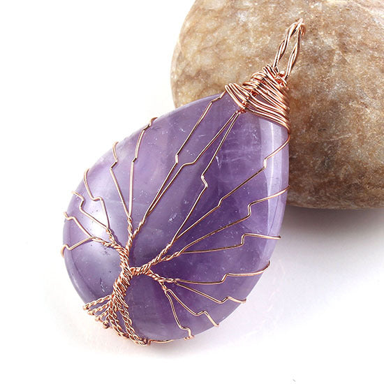 Tree of Life Natural Amethyst Quartz Crystal Pendant