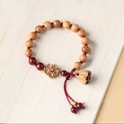 Peachwood Cinnabar Bead Lotus Pendant Red String Luck Bracelet