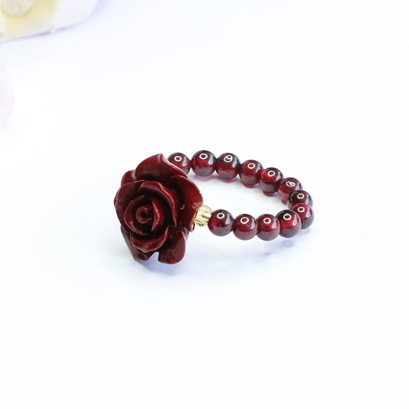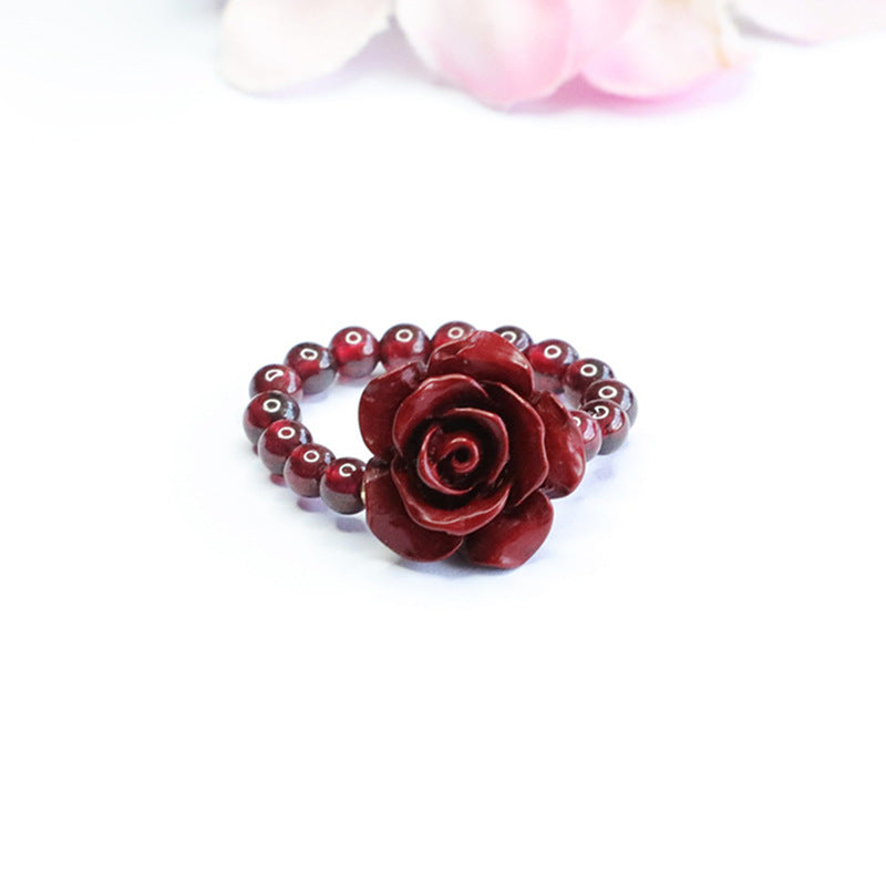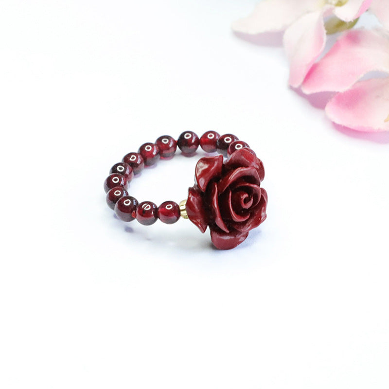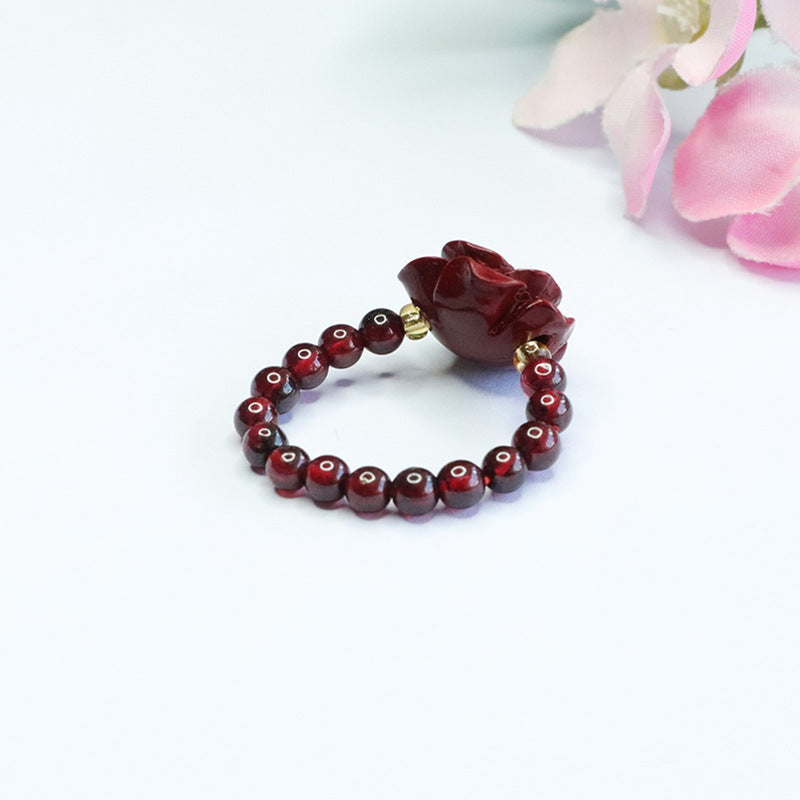 Wear the Garnet Bead Cinnabar Rose Love Ring as a daily reminder to open your heart, express love freely, and attract positive connections.