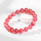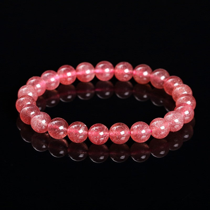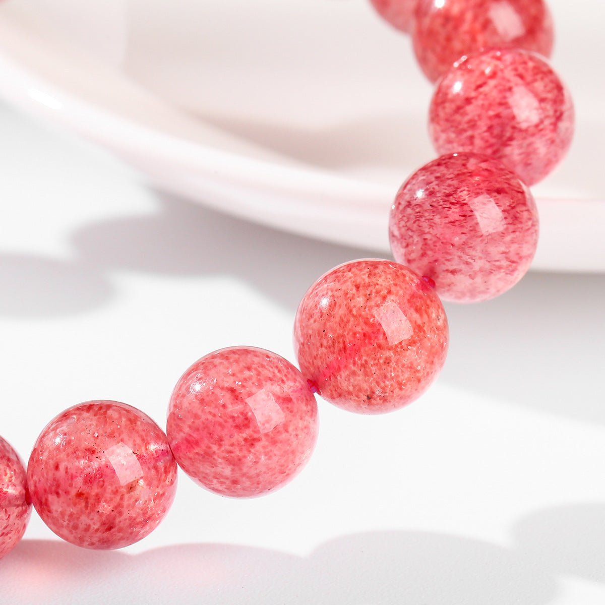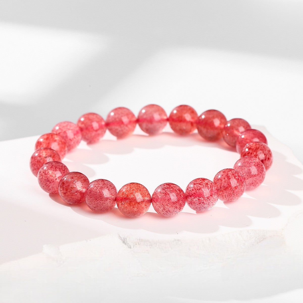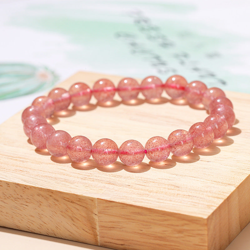 Crafted from natural strawberry quartz, each bead shimmers with delicate inclusions that resemble sweet strawberries, symbolizing love, joy, and heartfelt bonds. This bracelet is not only a meaningful accessory but also a stylish piece that complements both casual and elegant looks.
