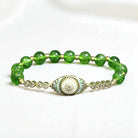 The Peridot Evil Eye Bracelet features the vibrant green hue of peridot—a gemstone traditionally associated with lightness, growth, and renewal—paired with the symbolic evil eye, a design used across many cultures as a protective charm against negative intentions.