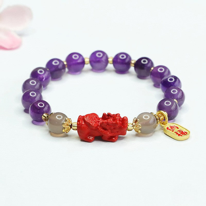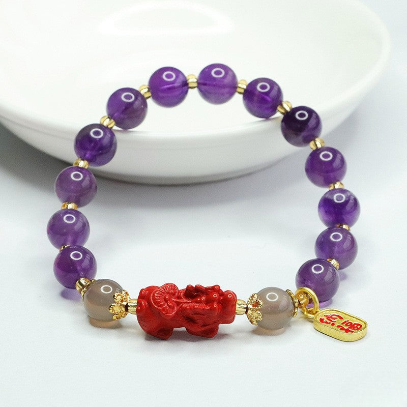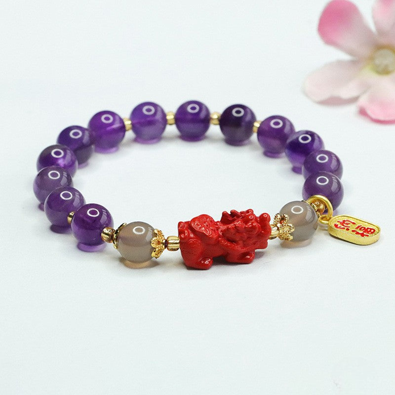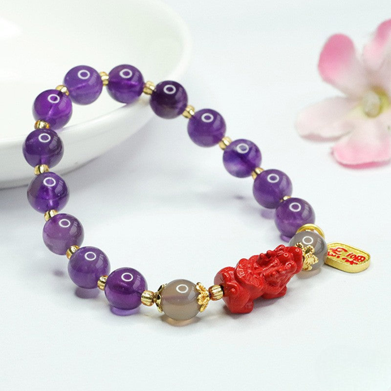 Amethyst Cinnabar Pixiu Charm Pendant Wealth Bracelet
