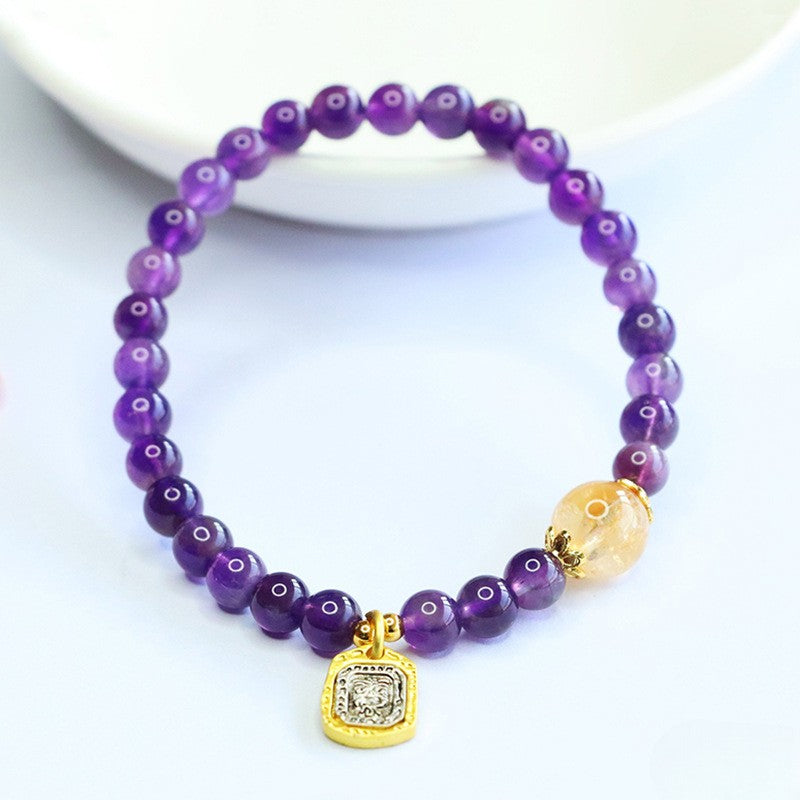Wear the Amethyst Citrine Charm Pendant Balance Bracelet as a reminder to stay calm, focused, and open to the flow of abundance and joy in your life.