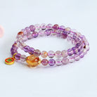 Wear the Double-Wrap Purple Phantom Quartz Citrine Charm Pendant Balance Bracelet as a reminder to embrace change, radiate positivity, and welcome abundance into your life.