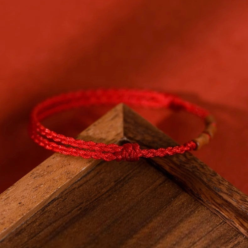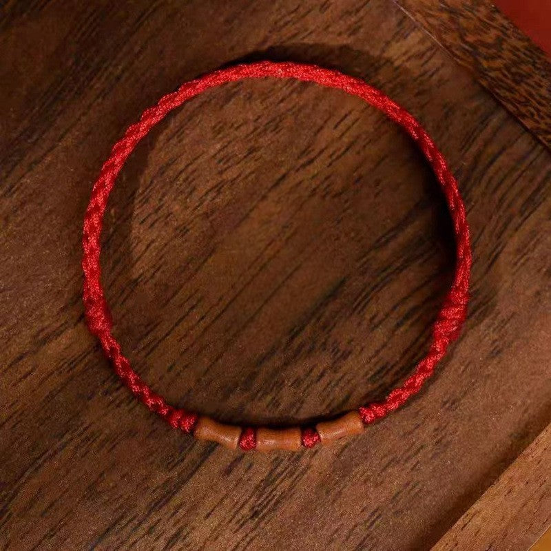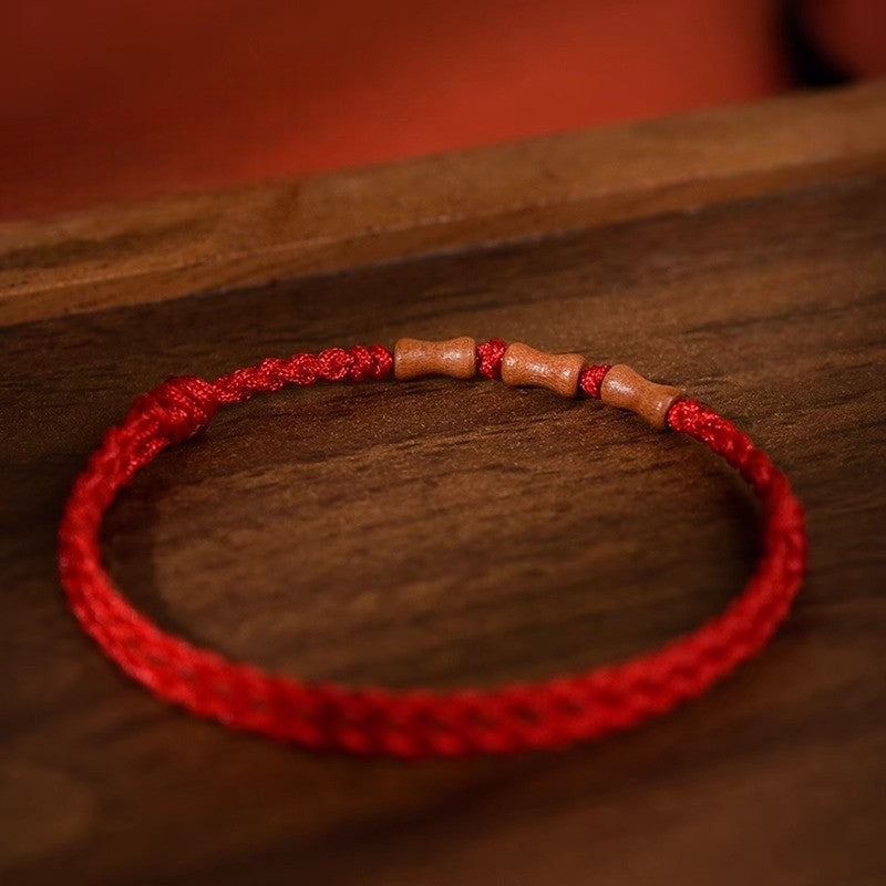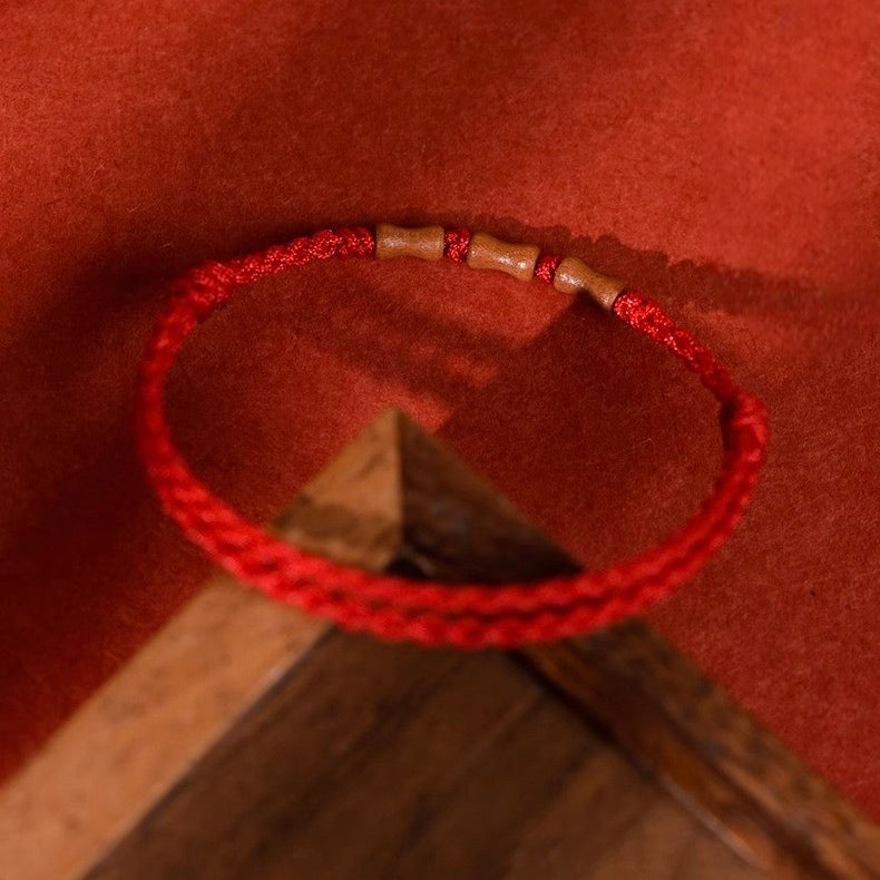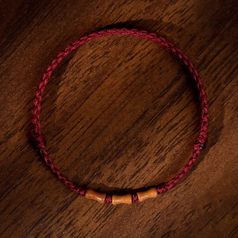 Peachwood Bamboo Bead Red String Luck Bracelet