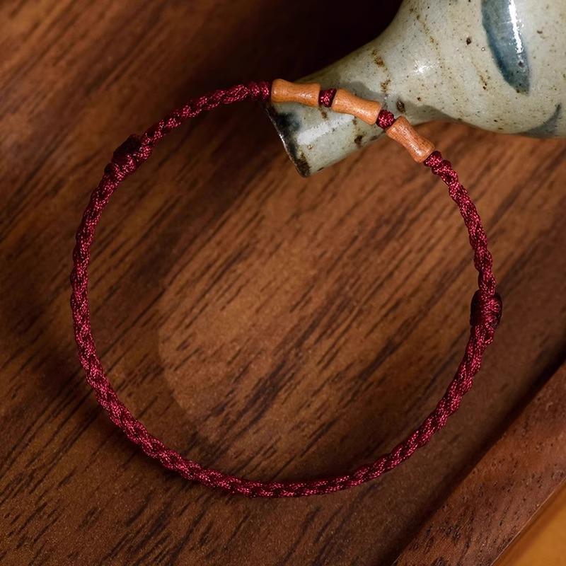 Peachwood Bamboo Bead Red String Luck Bracelet Highlights