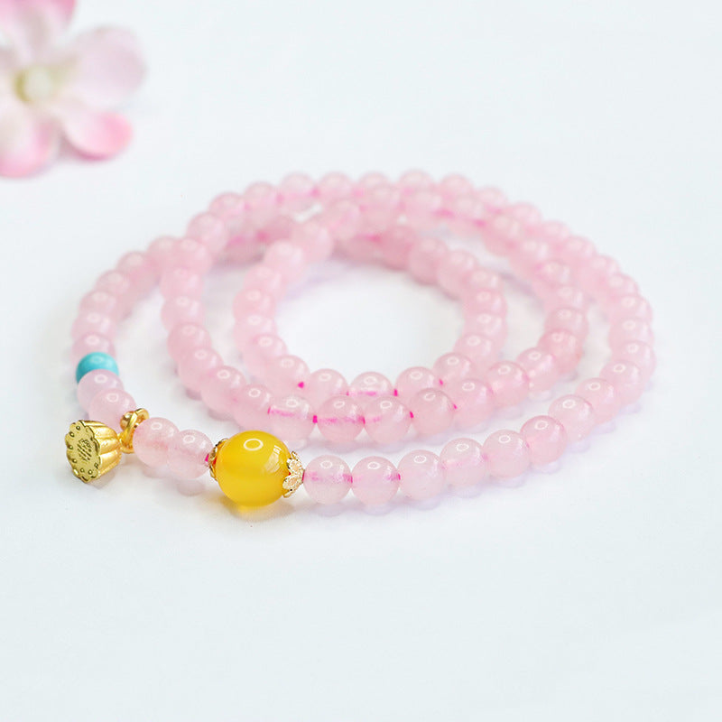 Rose Quartz Yellow Chalcedony Lotus Pendant Love Bracelet Highlights