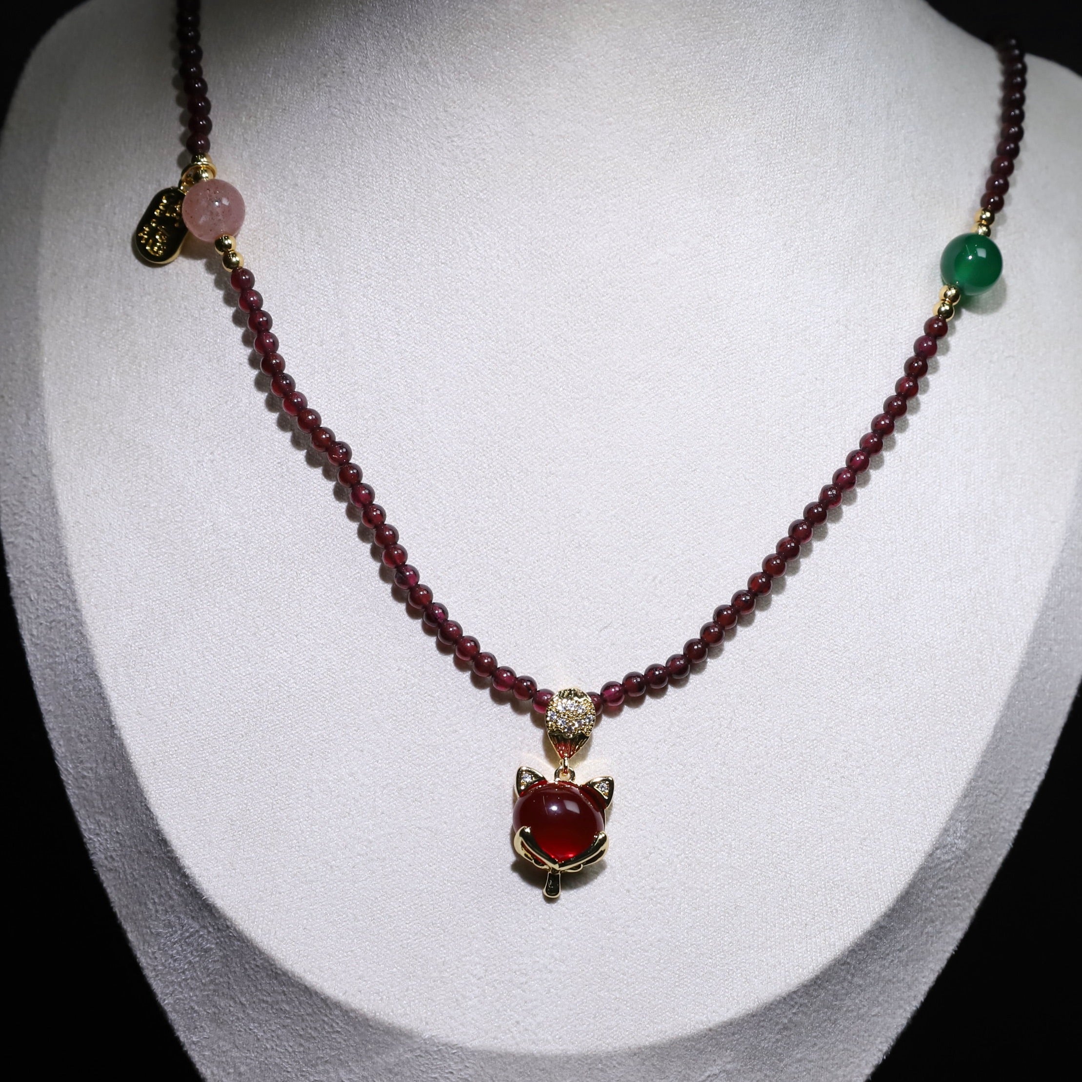 Channel vitality and protection with the Garnet Double Gourd Pendant Bracelet Necklace.