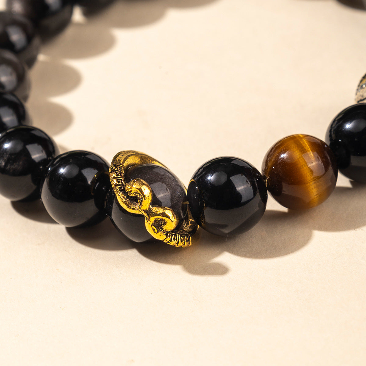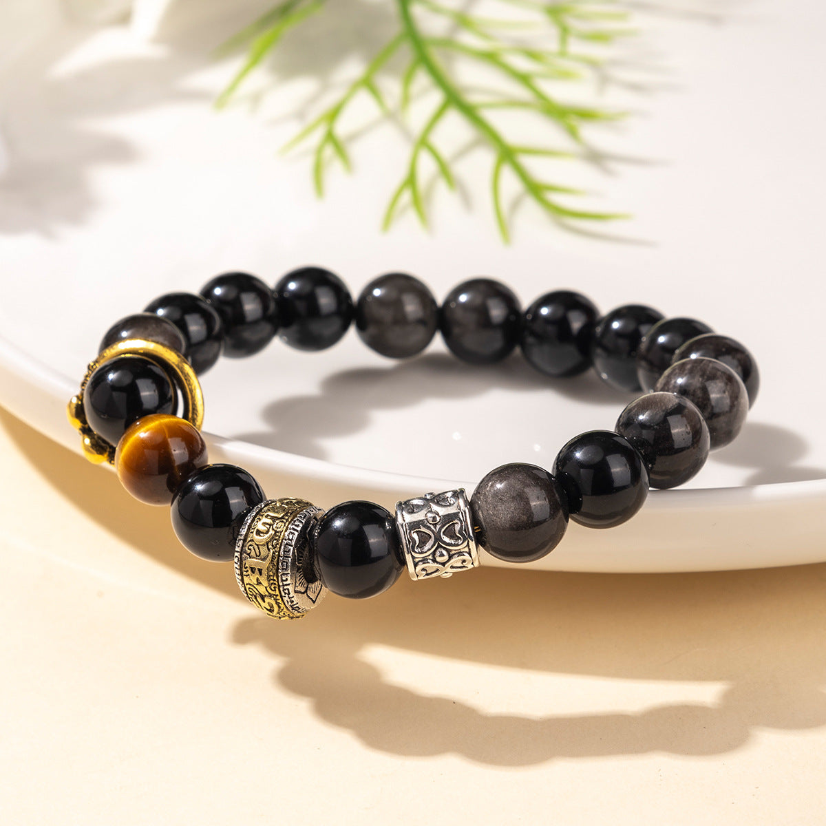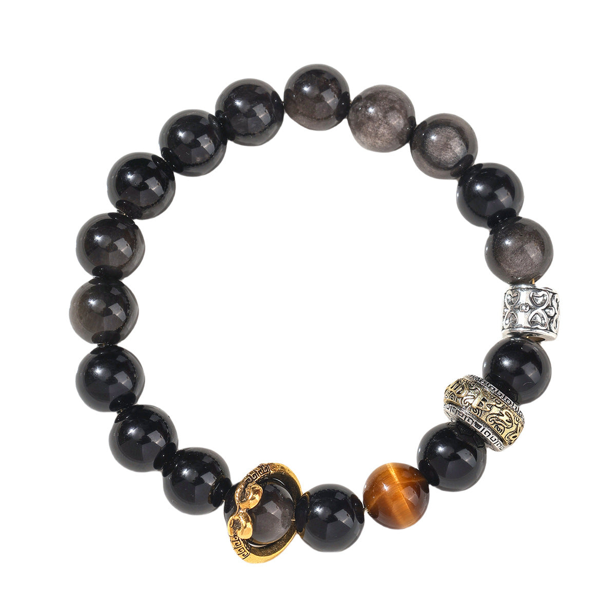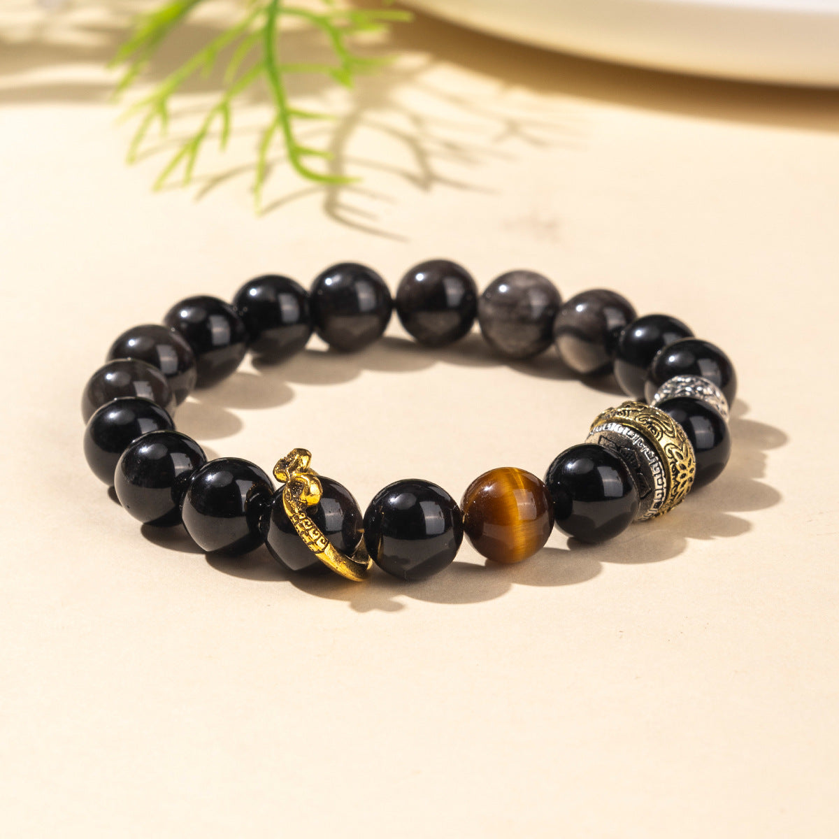 Bracelet de protection Wukong en obsidienne argentée et œil de tigre