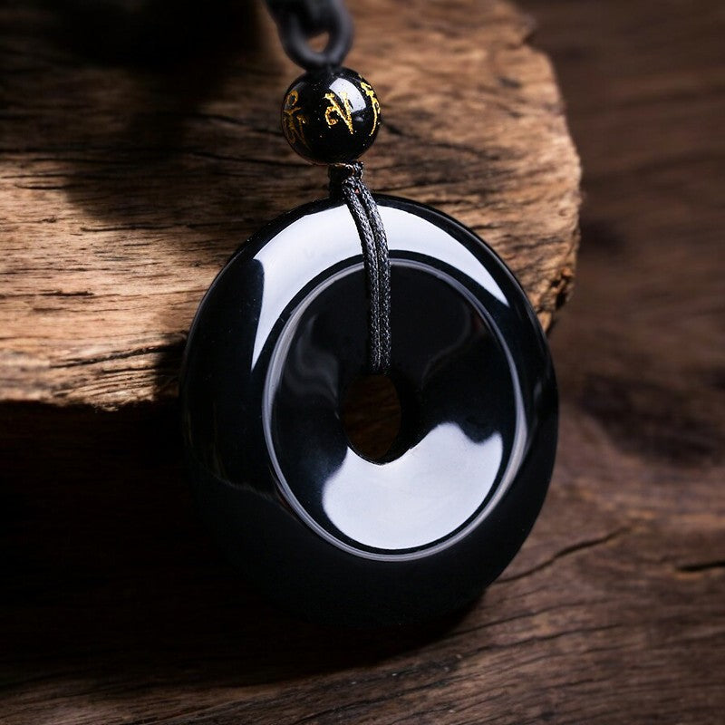 La boucle de la paix, aussi appelée « ping'an kou », est un symbole traditionnel chinois représentant la sécurité, la plénitude et l'harmonie. Associé à l'obsidienne noire – un verre volcanique naturel souvent apprécié pour sa beauté élégante – ce collier allie symbolisme ancien et modernité.