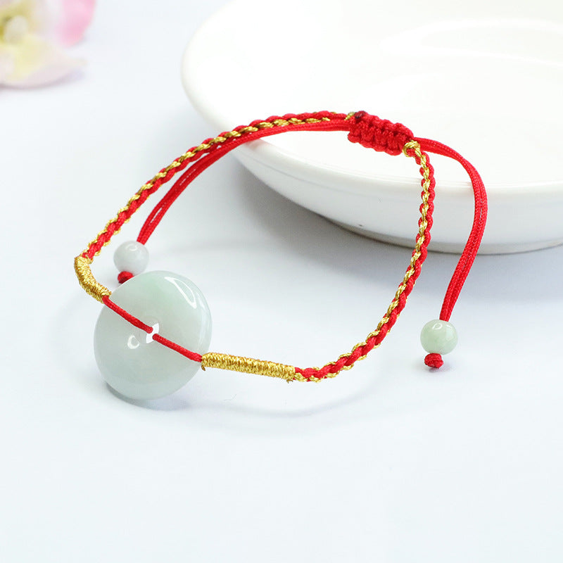 Hetian Jade Peace Buckle Red String Luck Bracelet