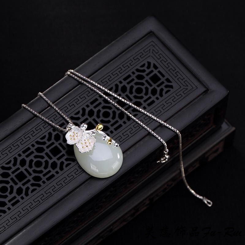 Crafted with 108 white jade beads and a symbolic lotus charm, this versatile mala can be worn as a bracelet or necklace—blending elegant design with traditional craftsmanship.